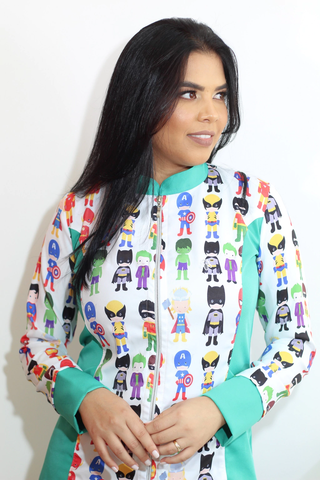 Aquele jaleco super fofo ideal para aquele dia de atendimento infantil!!! Sim chegou mais essa novidade 🥰 Confeccionado no tecido oxfordine super fresquinho! 20 dias úteis para a confecção e mais o tempo de envio dos correios. Ao finalizar a compra nos informe qual a estampa desejada e qual a cor do tecido nas laterais, punho e gola.