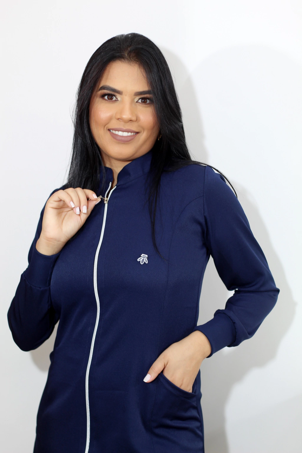 Jaleco com zíper, bolso lateral, punho ribana, gola padre.