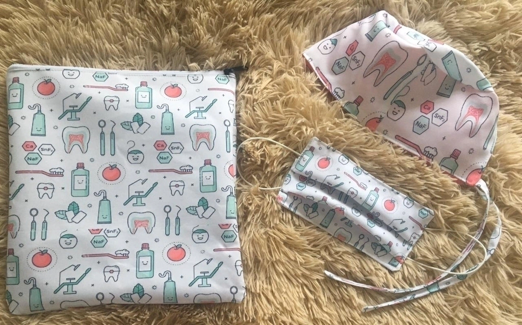 Tamanho 28cm x 28cm.Touca confeccionada em Oxford 100% poliéster, máscara confeccionada em tricoline 100% algodão e 100% poliéster a parte estampada.
