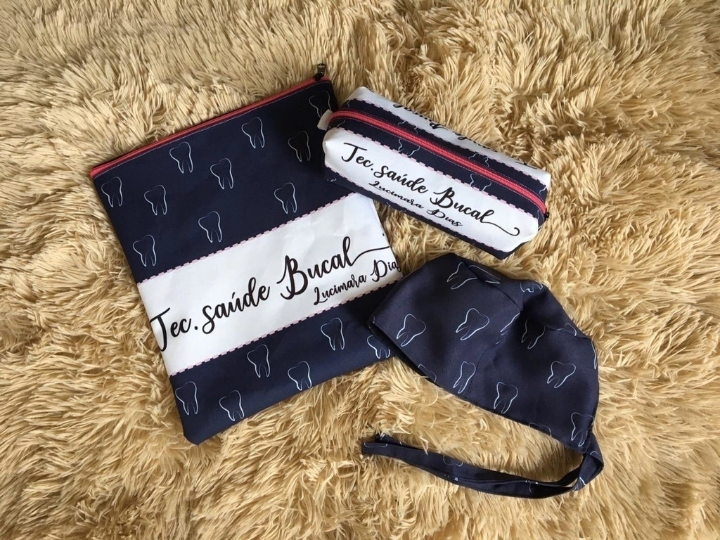 Porta jaleco é ideal para transportar seu jaleco sem levar micro-organismos de um lugar para o outro, evitando assim a contaminação cruzada! Além de evitar que seu jaleco chegue amassado! Porta jaleco vem todo forrado para que fique fácil a higienização do mesmo! Tamanho 28cm x 28cm (porta jaleco). Estojo 21cm x 10cm x 4cm. Touca confeccionada em Oxford. Para personalização do nome, após a compra nos envie o nome que vai ser personalizado por meio da plataforma de WhatsApp disponivel no nosso site.