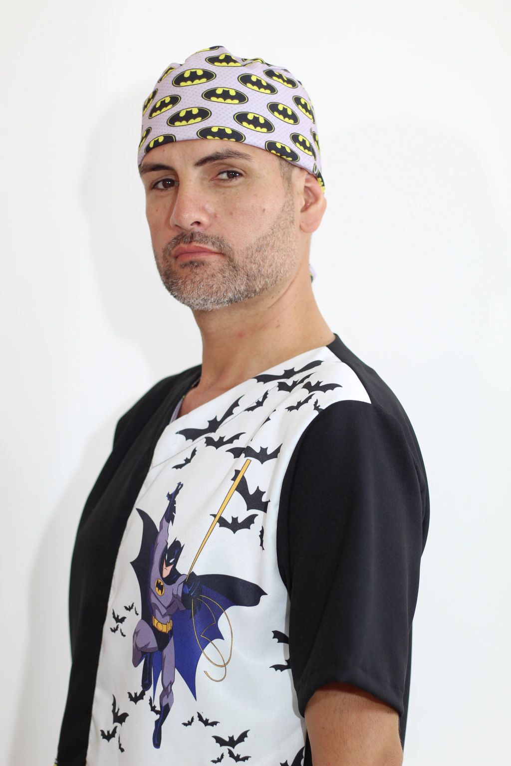 Pijama cirurgico masculino, estampado no tema batman. Gola V e 1 bolso na camisa, calça com elastico no cós e bolsos frontais modelo faca. Confeccionado no tecido Gabardine. Scrub Perfeito para profissionais que buscam conforto e qualidade, cada detalhe foi cuidadosamente pensado para que a profissional esteja pronto para impressionar.
